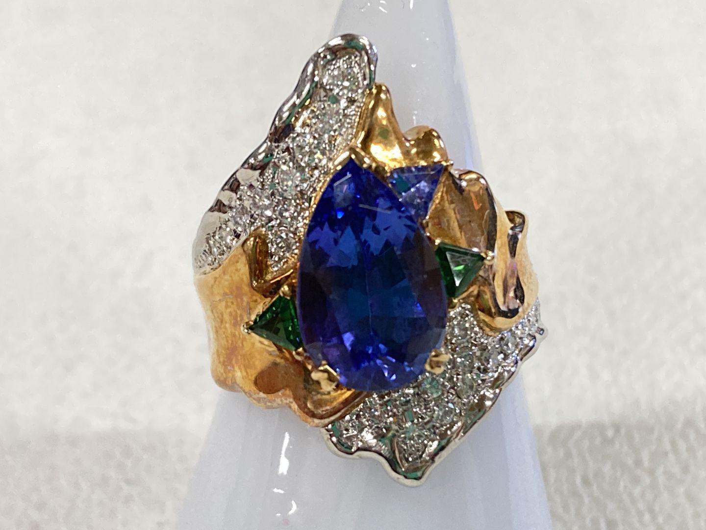 銀座でダイヤモンドを買取。k18 Pt900 15.7g 4.66 D.028 タンザナイトダイヤリング