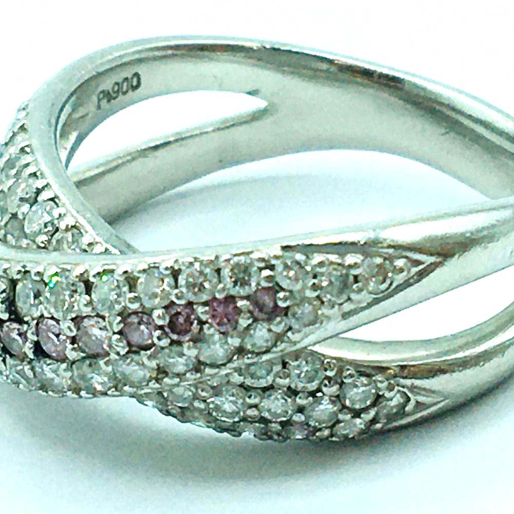 ダイヤモンドを銀座で買取。Pt900 10.8g PD0.14 0.87 デザイン ダイヤリングを買取りました。