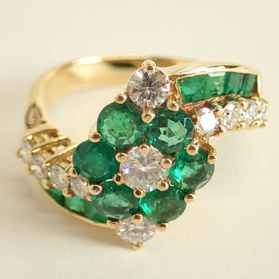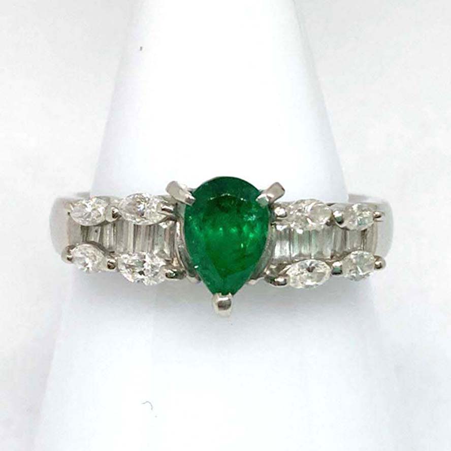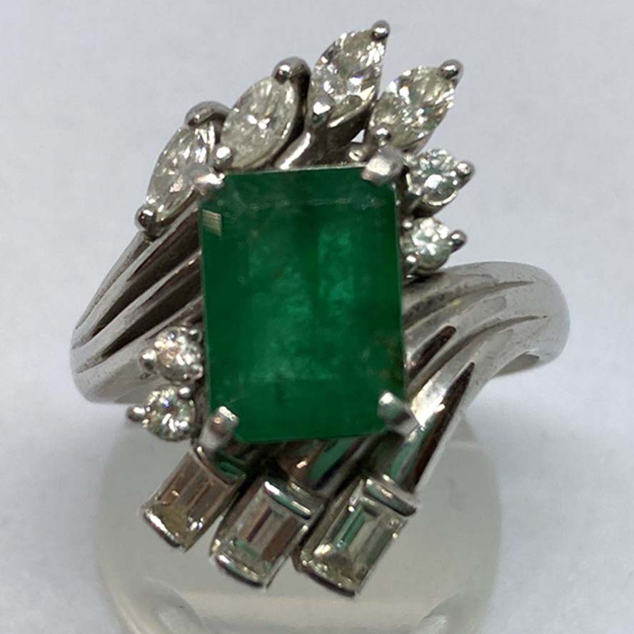 エメラルドを銀座で買取。 Pt900 13.0g D0.96/E2.81Ct デザインリングを買取りました。
