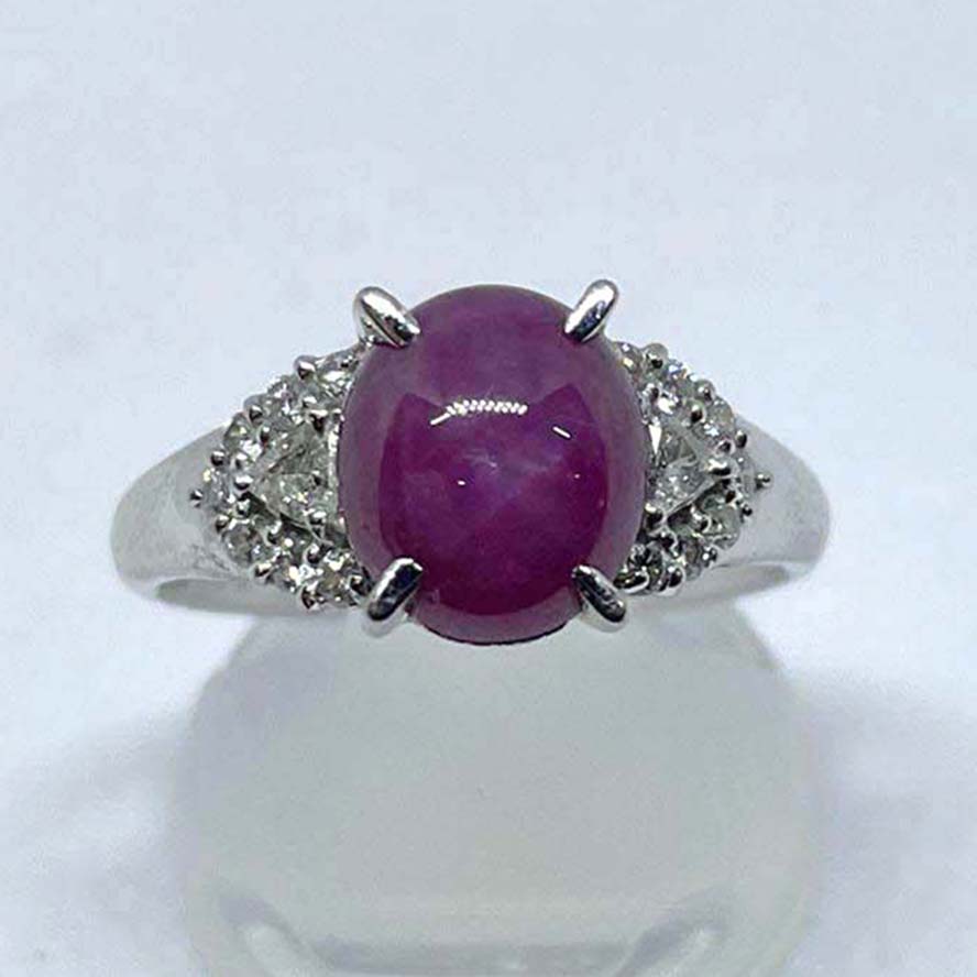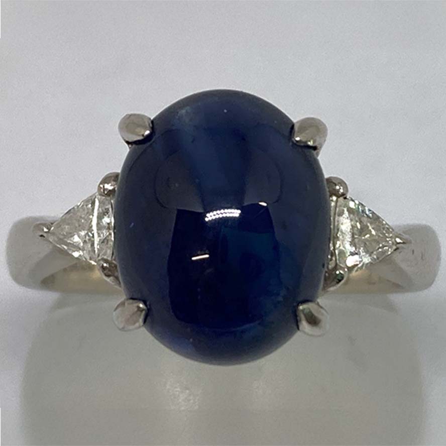 サファイアを銀座で買取。Pt900 2.75ct D0.31ct スターサファイア リング 6.7gを買取りました。