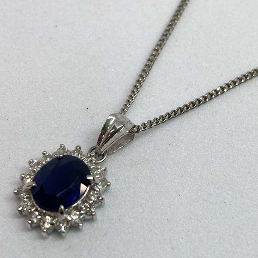 サファイアを銀座で買取。Pt900 5.6g D0.35 サファイア 1.65 ペンダントトップを買取りました。