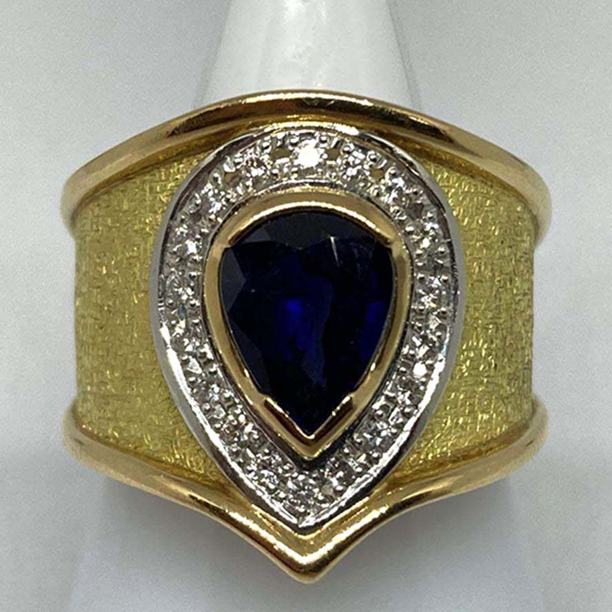 サファイアを銀座で買取。K18×Pt900 13.1g 1.80 D0.16 ダイヤサファイアリングを買取りました。