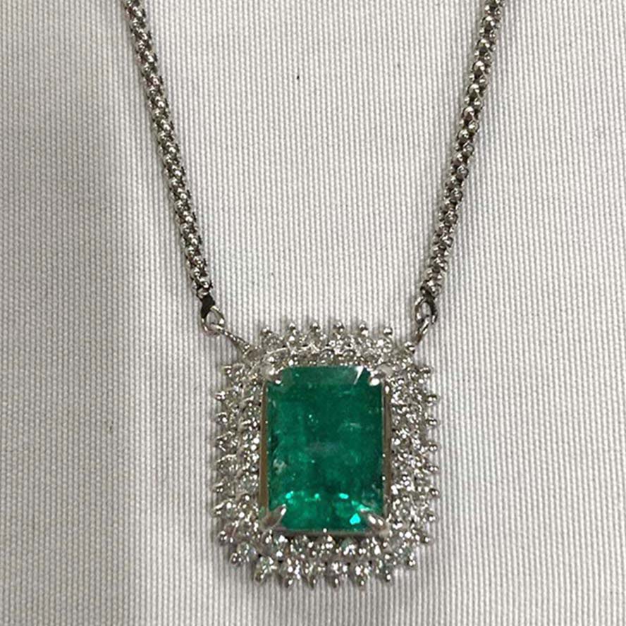 エメラルドを銀座で買取。Pt850 6.7g 1.93 0.46 エメラルド ダイヤ ネックレス を買取りました。