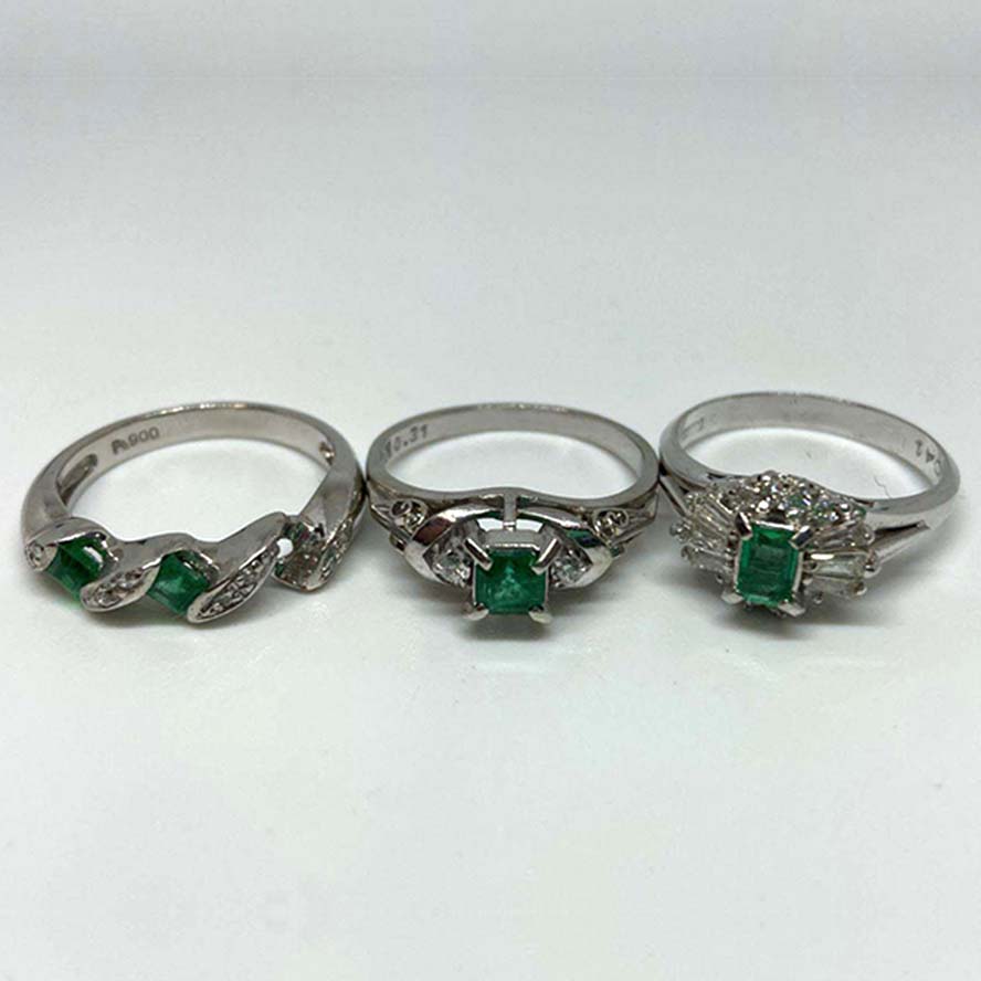 銀座でエメラルドを買取。Pt900 エメラルド付 リング 計3点 14.0gを買取りました。