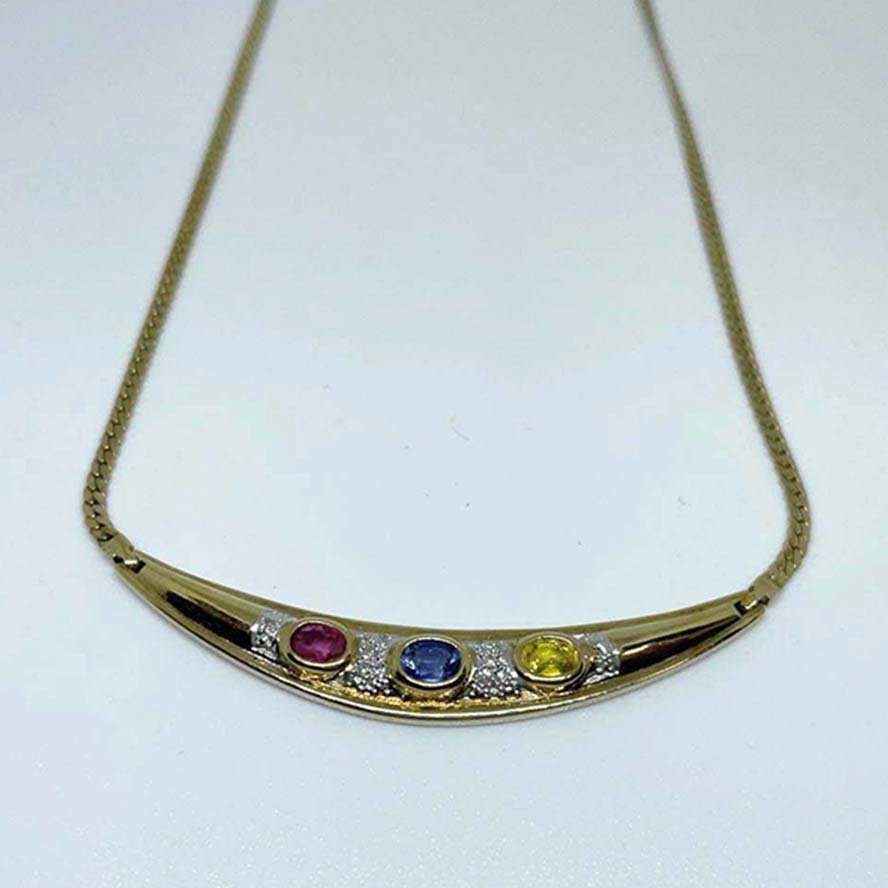 サファイアを銀座で買取。K14 9.5g 3P ネックレス ルビー、サファイア、トパーズを買取りました。
