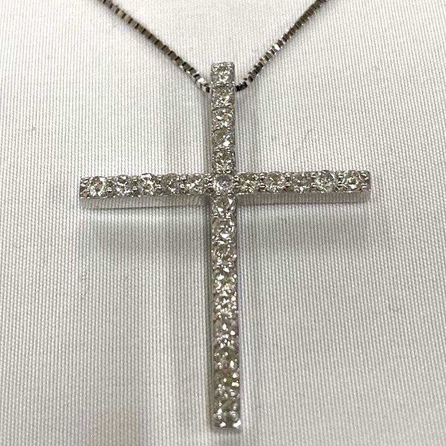 銀座でダイヤモンドを買取。K14 K14WG 5.0g D1.00Ct 25Pダイヤ クロス ネックレスを買取りました。