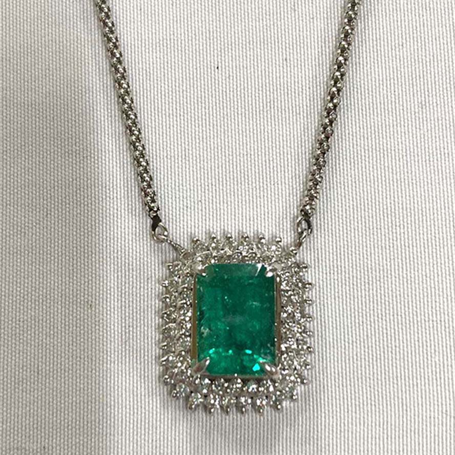 銀座でダイヤモンドを買取。Pt850 6.7g 1.93 0.46 エメラルド ダイヤ ネックレスを買取りました。