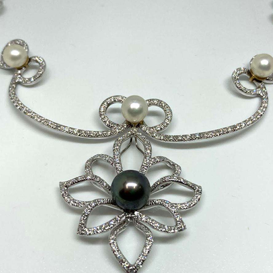 ダイヤモンドを銀座で買取。 K18 53.4→48.4g 10Pパール パヴェダイヤ フラワートップチョーカーを買取りました。