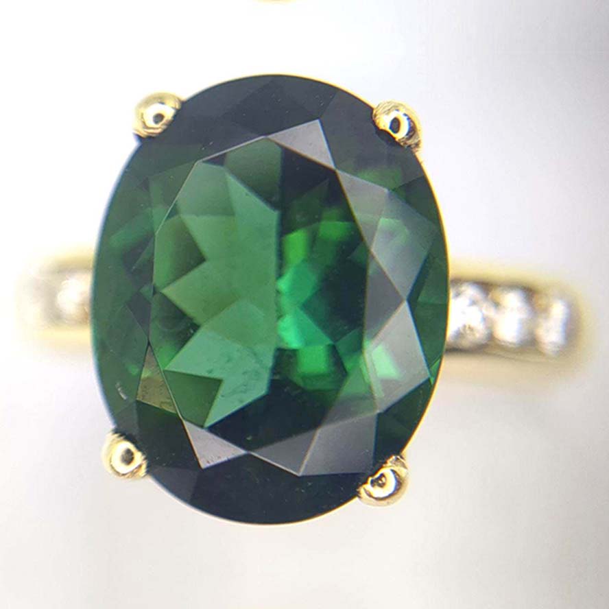 ダイヤモンドを銀座で買取。K18 5.3g グリーンガーネット ダイヤ6P デザインリングを買取りました。