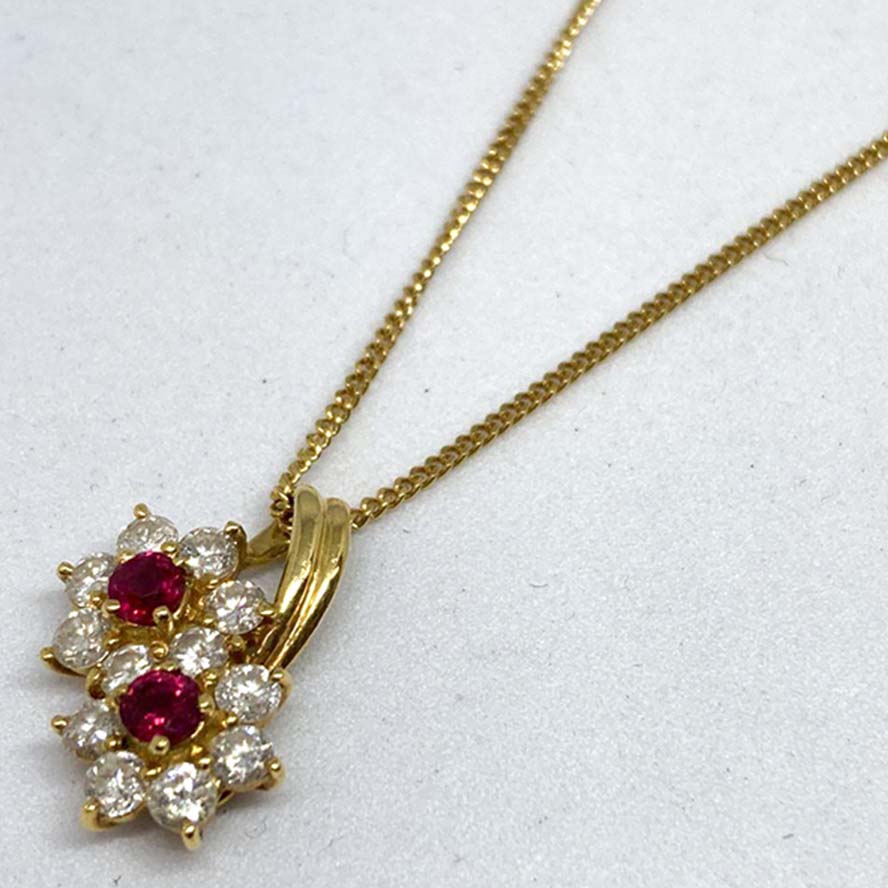 ダイヤモンドを銀座で買取。K18 4.6g 0.36 0.76 ダイヤルビー ネックレスを買取りました。