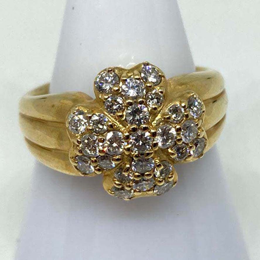 銀座でダイヤモンドを買取。K18 8.8g 0.73 ダイヤ クローバーデザイン リングを買取りました。