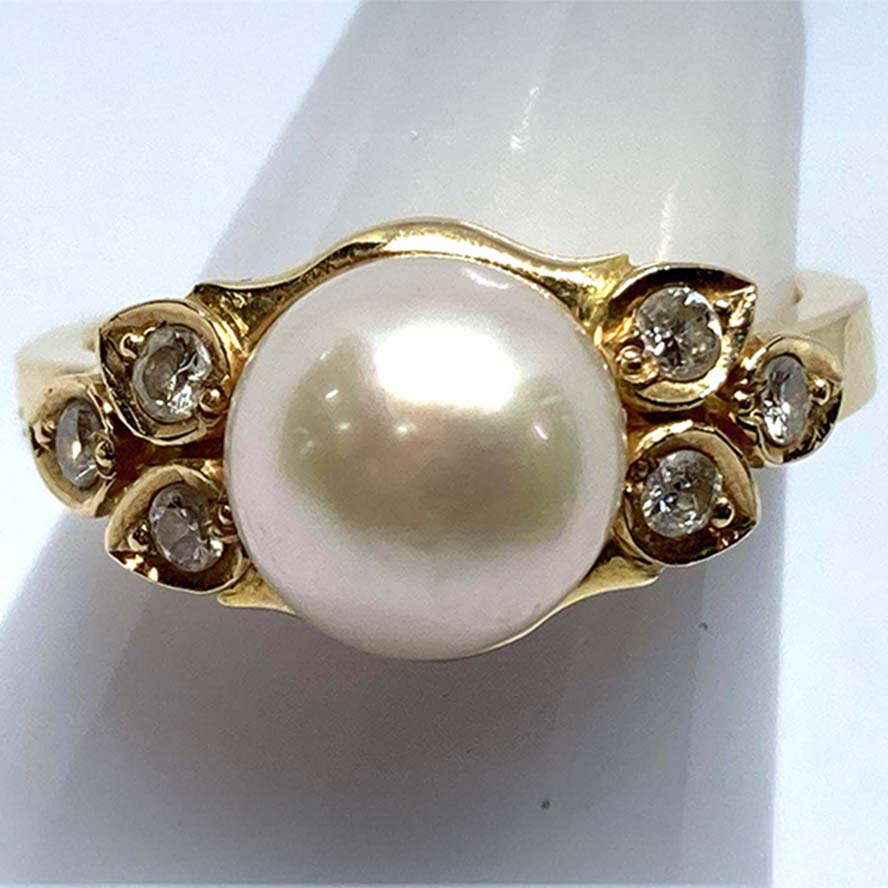 ダイヤモンドを銀座で買取。K9 8.5㎜パール×メレダイヤ リング ※5.8gを買取りました。
