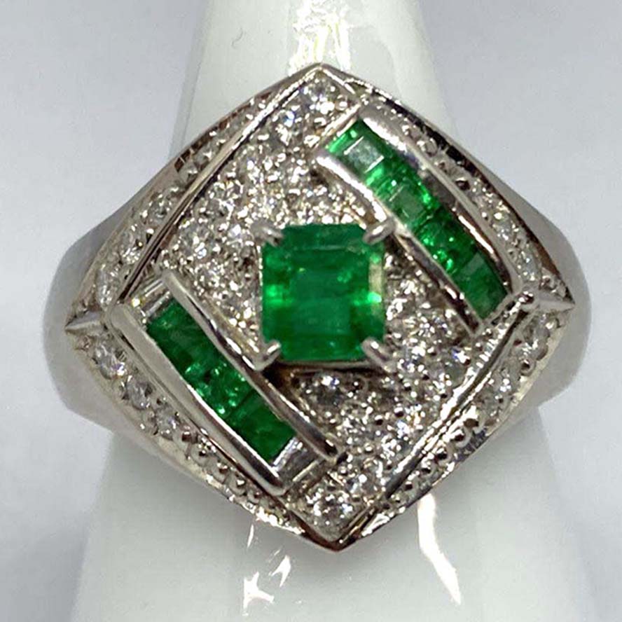 ダイヤモンドを銀座で買取。Pt900 エメラルド 0.56 ダイヤモンド 0.32ct 5.3g リングを買取りました。