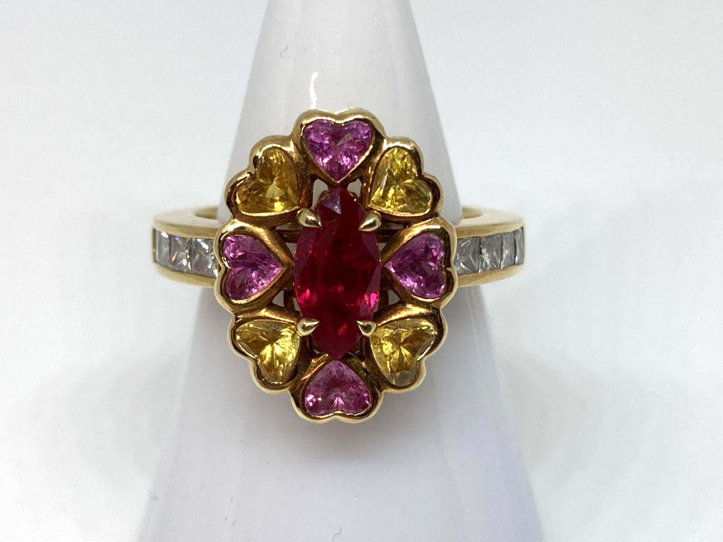 銀座でダイヤモンドを買取。K18 ルビー ダイヤリング 9.6g 0.51 1.12 0.80 0.70ct→3.1ctを買取りました。