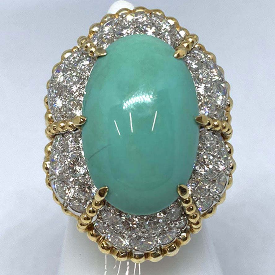 銀座でダイヤモンドを買取。K18 21.0g ターコイズ×ダイヤ リングを買取りました。