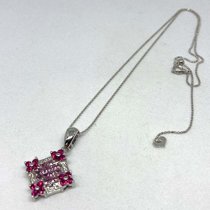 ダイヤモンドを銀座で買取。K18WG S0.70 R0.60 D0.05 5.4g ピンクサファイア ネックレスを買取りました。
